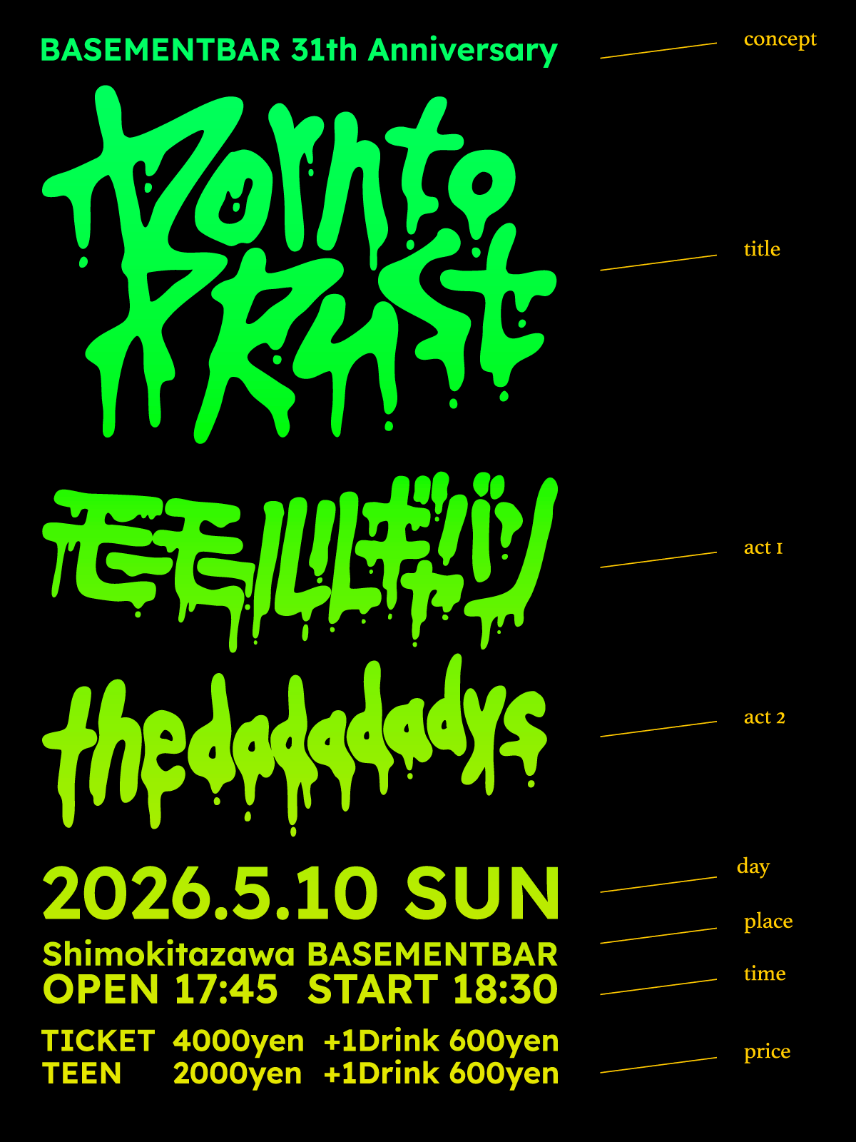 【チケット】前売¥4,000- (D代別)TEEN ¥2,000- (D代別)